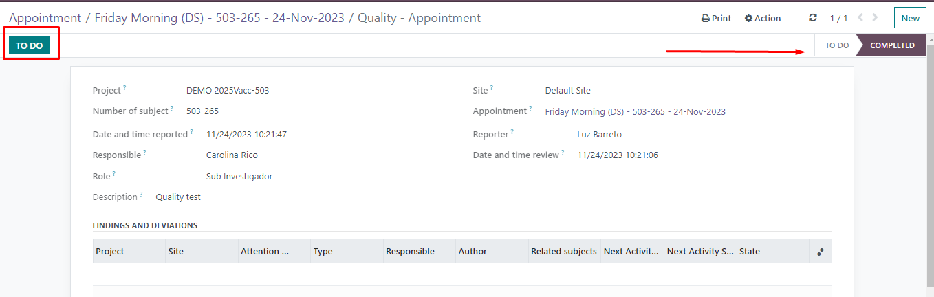 The new and improved quality review functionality within Trial360 seamlessly integrates quality assessments directly into the visit process. Effortlessly capture review details, including date, time, reviewer name and role, responsible party, a description field, and the option to link findings and deviations to the corresponding record.